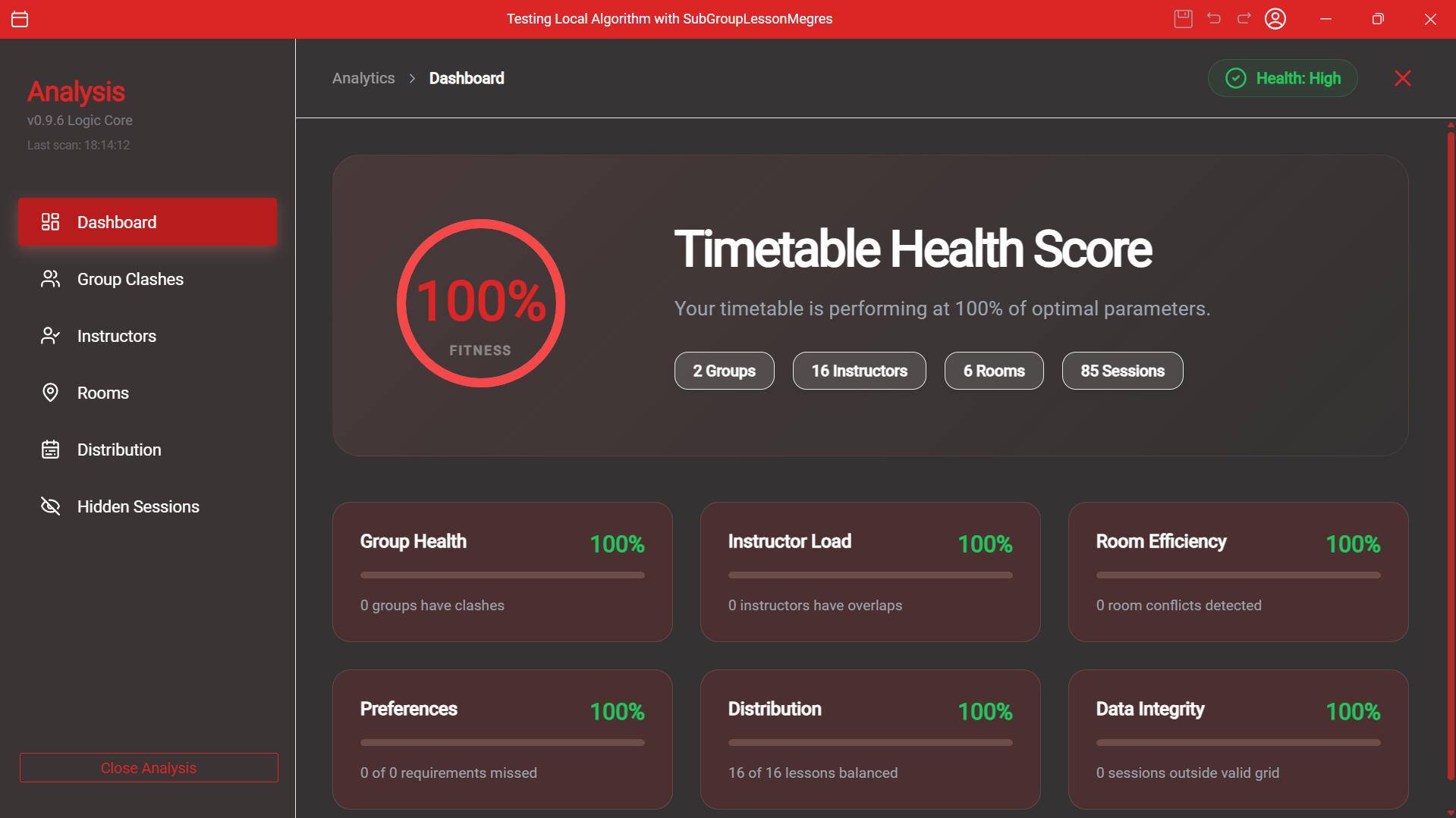Your complete analytics suite for school scheduling. Know if your timetable will work before generating it, see exactly how resources are used, and get a 0-100 quality score after optimization.