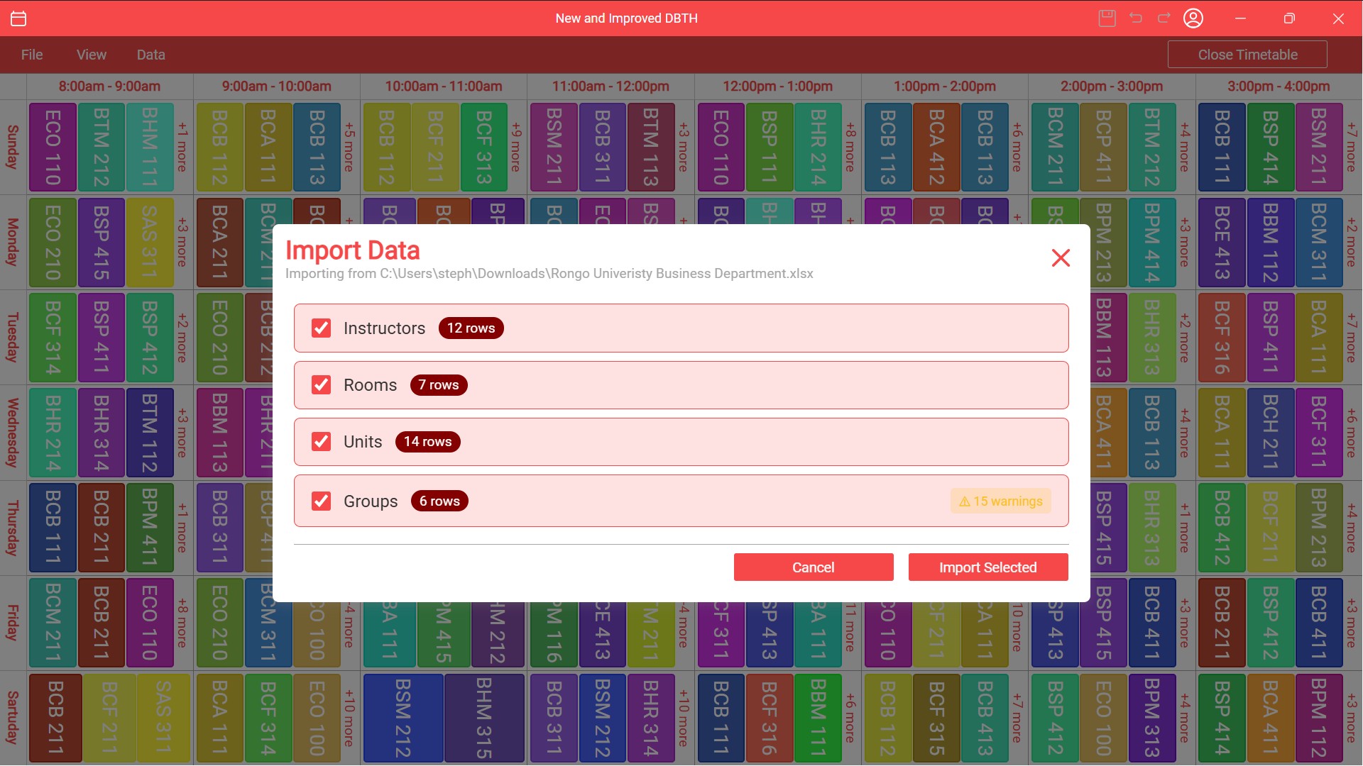 Each timesheet contains multiple databases with their own instructors, groups, units, and rooms. Perfect for: