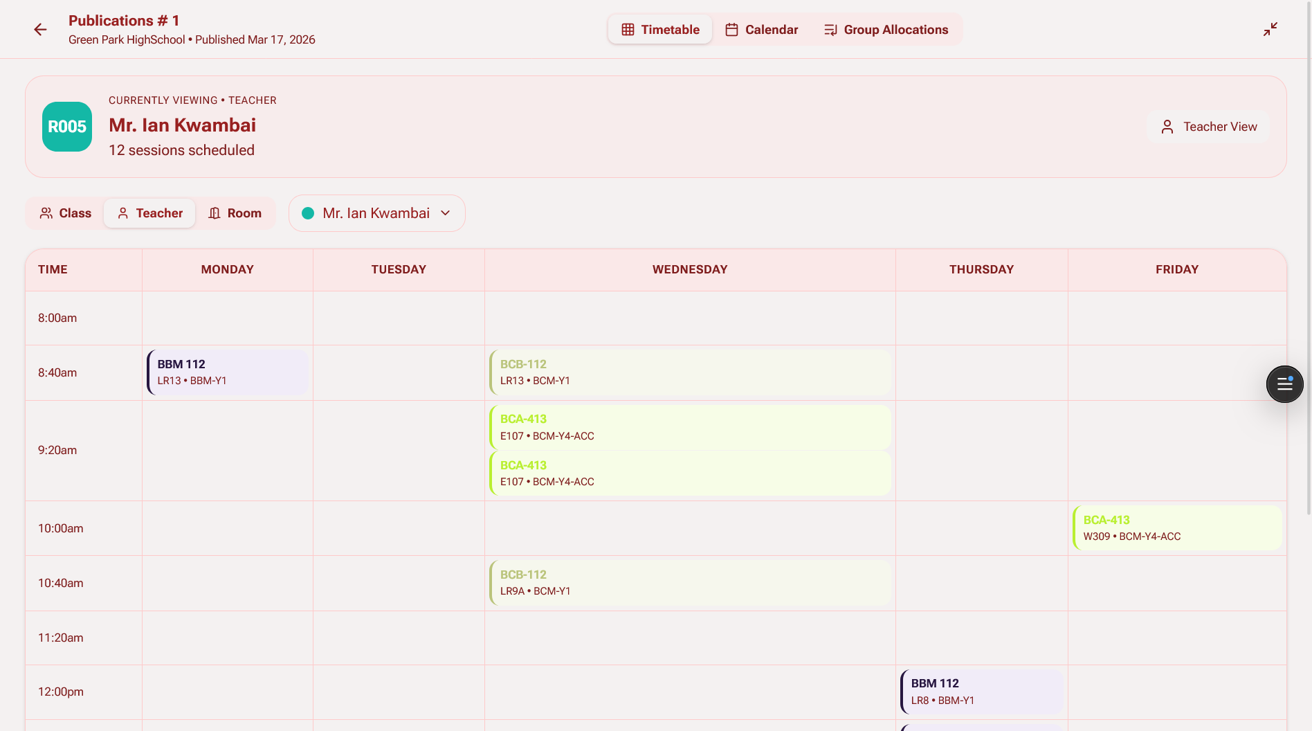 Automatically published to your school's page. Every school member can view published timetables instantly.
