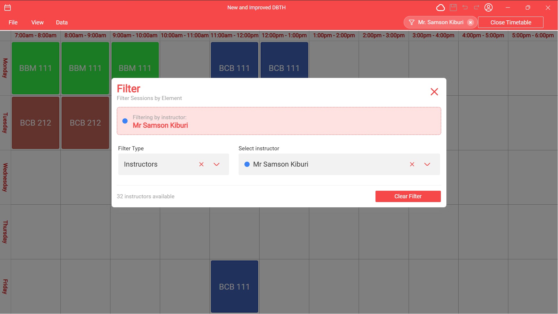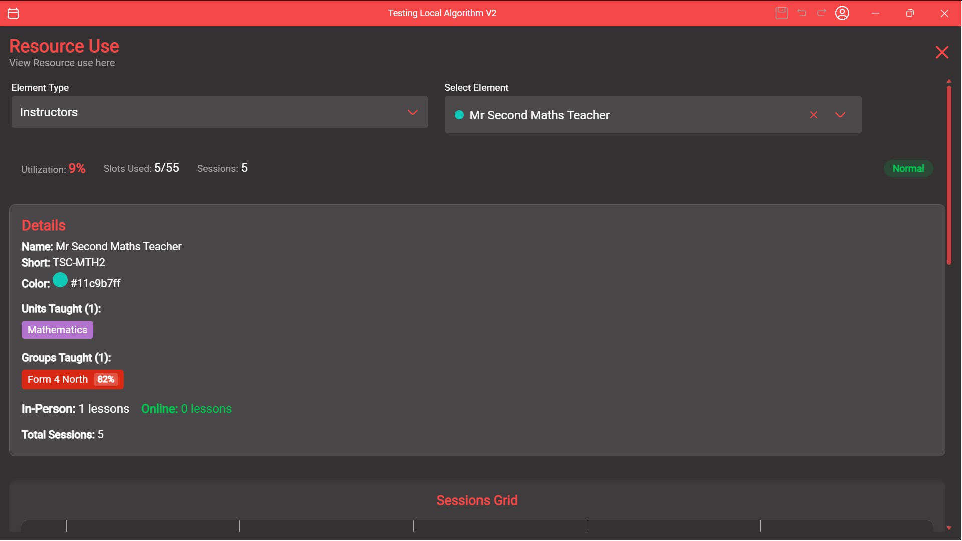 Filter the timetable to show only sessions for a specific resource. Make targeted adjustments without the visual noise of the full schedule.