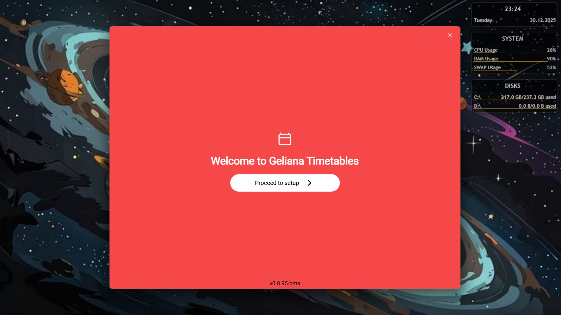 After installing from timetables.geliana.com/app/download, you'll be greeted by the Welcome screen. This appears only on first launch.