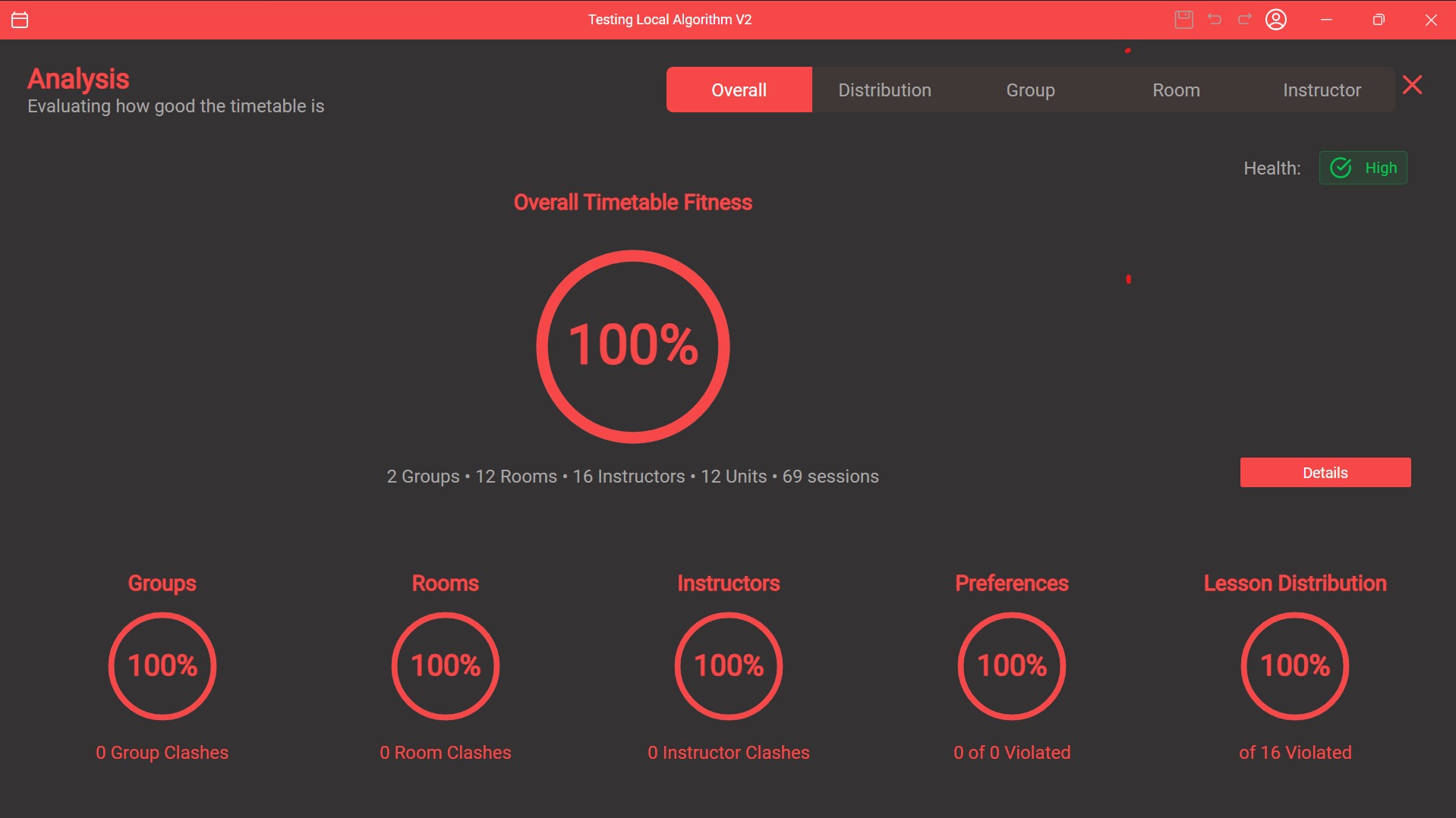 View Open Source AlgorithmsMeasure your timetable's quality with comprehensive reports across multiple dimensions.