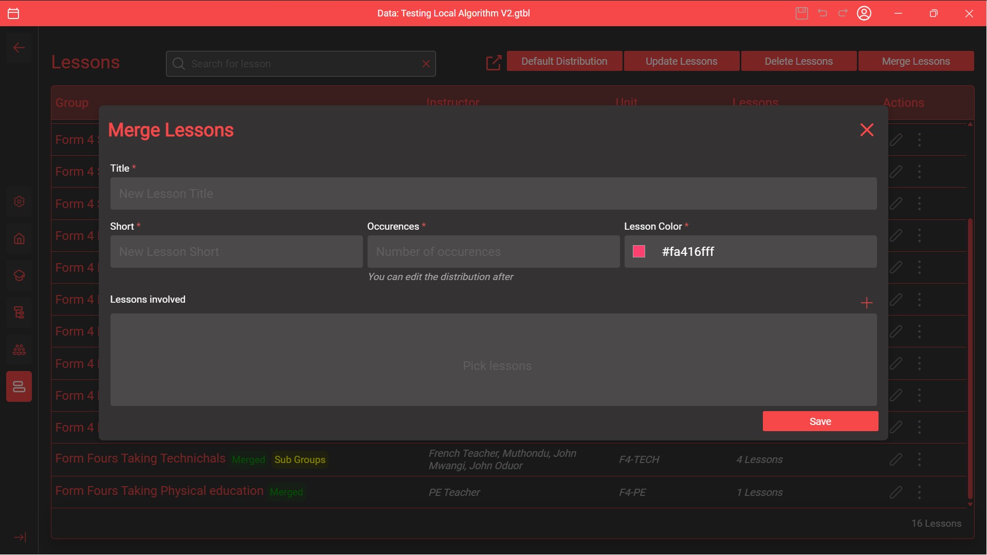 The system generates lesson templates: “This group needs to study this unit with this instructor.” You set sessions per week and distribution.